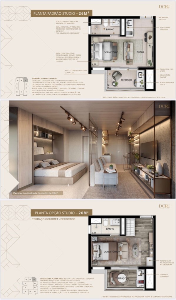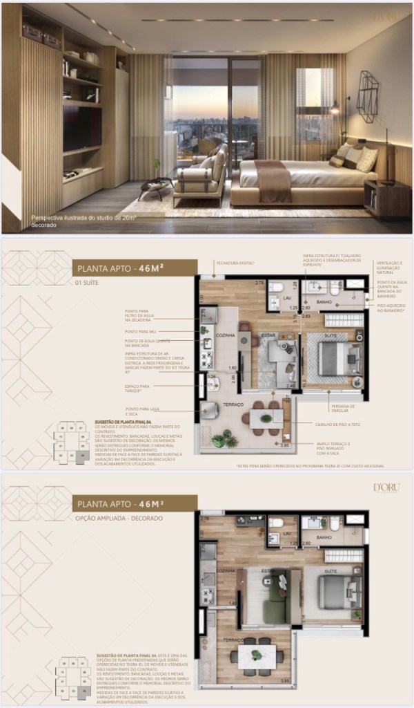 No Nosso Residencial serão Unidades Studios de 26 Ms até 33 Ms e de 01 Dormitório de 46 Ms e 52 Ms com 01 Uma Vaga de Garagem