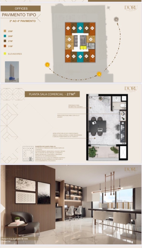 Nas Salas Comerciais serão Conjuntos de 25 Ms até 31 Ms podendo ser feito Junções de mais de Duas Salas e uma Loja no Térreo de 465 Ms.