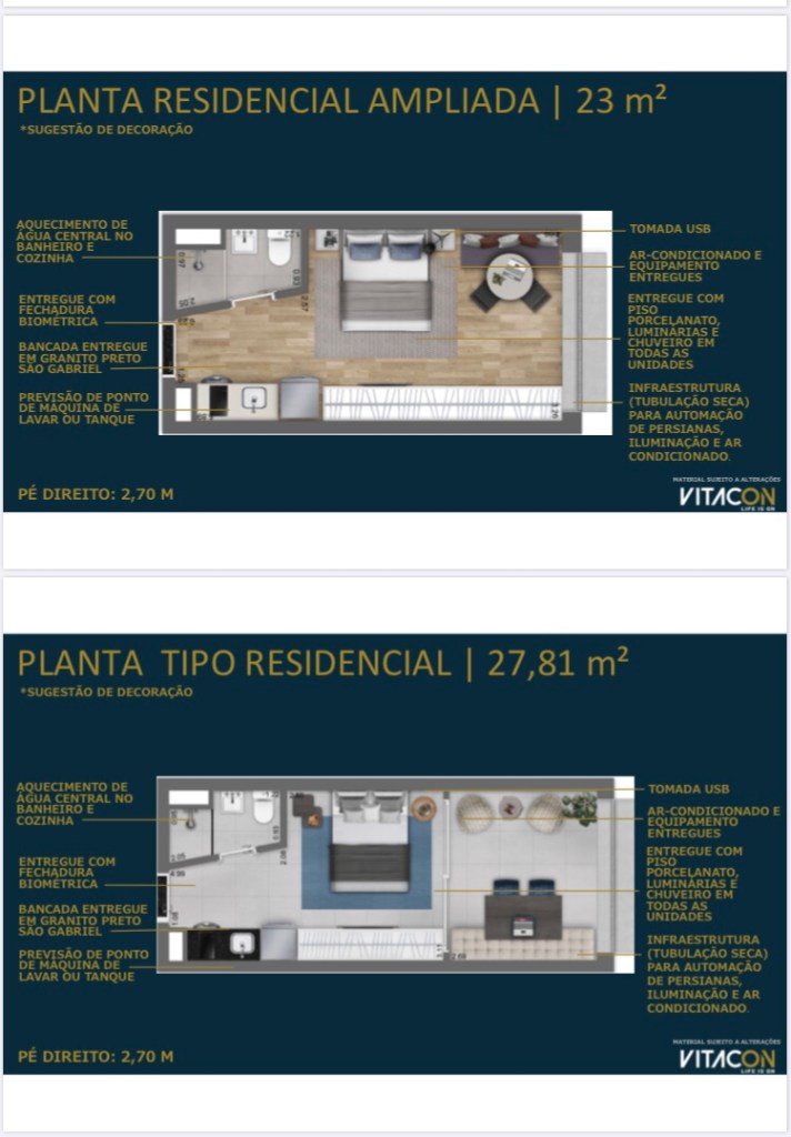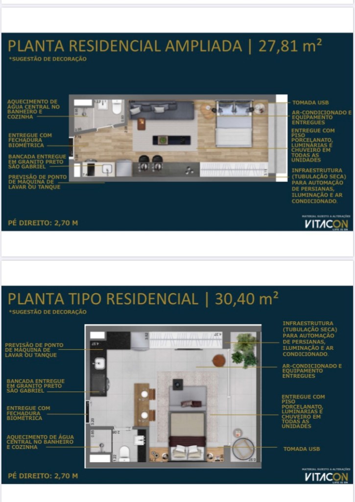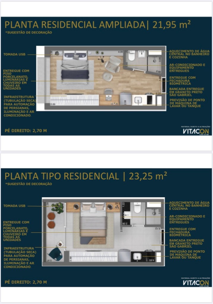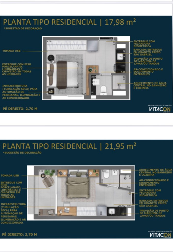Serão 242 Apartamentos Studios Residenciais e 46 Apartamentos Studios Não Residenciais de 18 Ms até 45 Ms com mais 3 Lojas