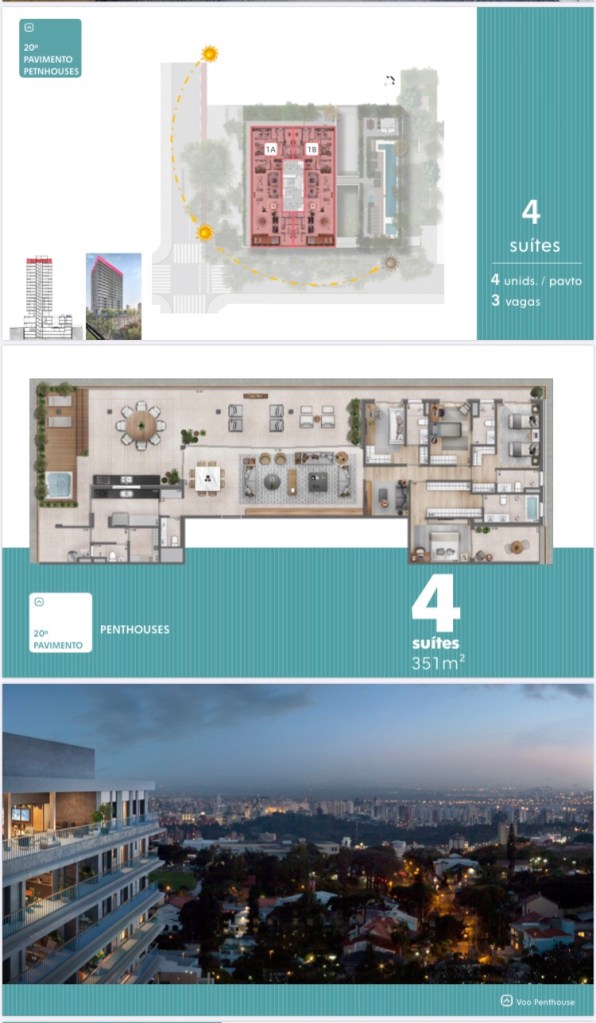 No 20.Vigésimo e 21.Vigésimo Primeiro Andar teremos Duas Coberturas Duplex de 352 Ms com 03 Três Vagas de Garagem