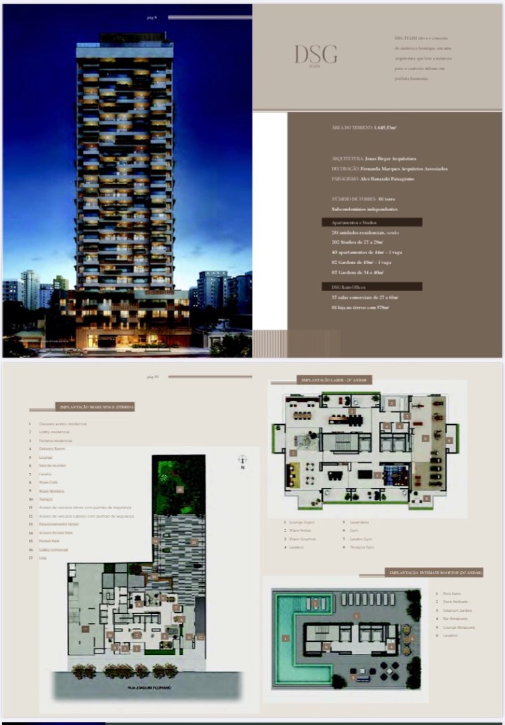 O DSG Itaim Vem com 01 Uma Loja e Salas Comerciais de 27 Ms a 61 Ms e Serão Studios Residenciais de 28 Ms e de 44 Ms Sem Vaga de Garagem(poucas unidades disponíveis),onde você tem um Corredor de Ônibus ao Lado e a Ciclovia na Juscelino Kubitscheck que te leva a 5 minutos do Parque do Ibirapuera .