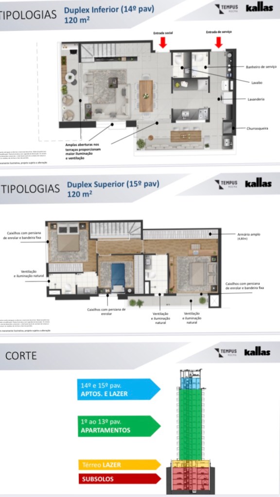 Serão Apartamentos de 52 Ms com 02 Dois Dormitórios e 01 Suíte e de 54 Ms com 02 Duas Suítes e ambos com 01 Vaga de Garagem,vamos ter também Apartamentos de 66 Ms com 03 Três Dormitórios e 01 Uma Suite e 01 Uma Vaga de Garagem e também teremos Apartamentos Duplex de 120 Ms com 02 Duas Suítes e 02 Duas Vagas de Garagem!!!