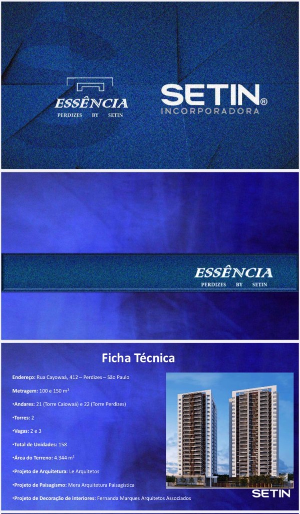 Em um Terreno de 4.344 metros a Setin convida você e a sua Família a conhecer o mais novo Lançamento de Alto Padrão da Setin,o Essência Perdizes,um Produto Essencial para seu Conforto em Bem Estar junto aos Seus Familiares e Amigos
