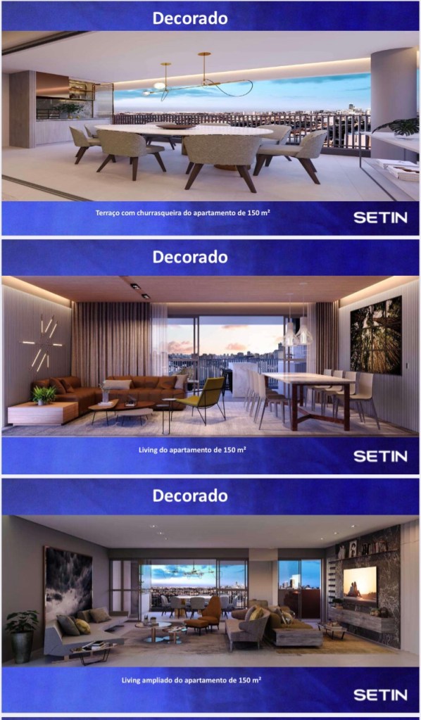 Serão Apartamentos de 100 Ms com 03 Três Dormitórios e 01 Uma Suíte ou de 02 Duas Suítes e 02 Duas Vagas de Garagem e de 150 Ms de 03 Suítes ou de 03 Três Dormitórios e 02 Duas Suítes com 02 Duas e 03 Três Vagas de Garagem
