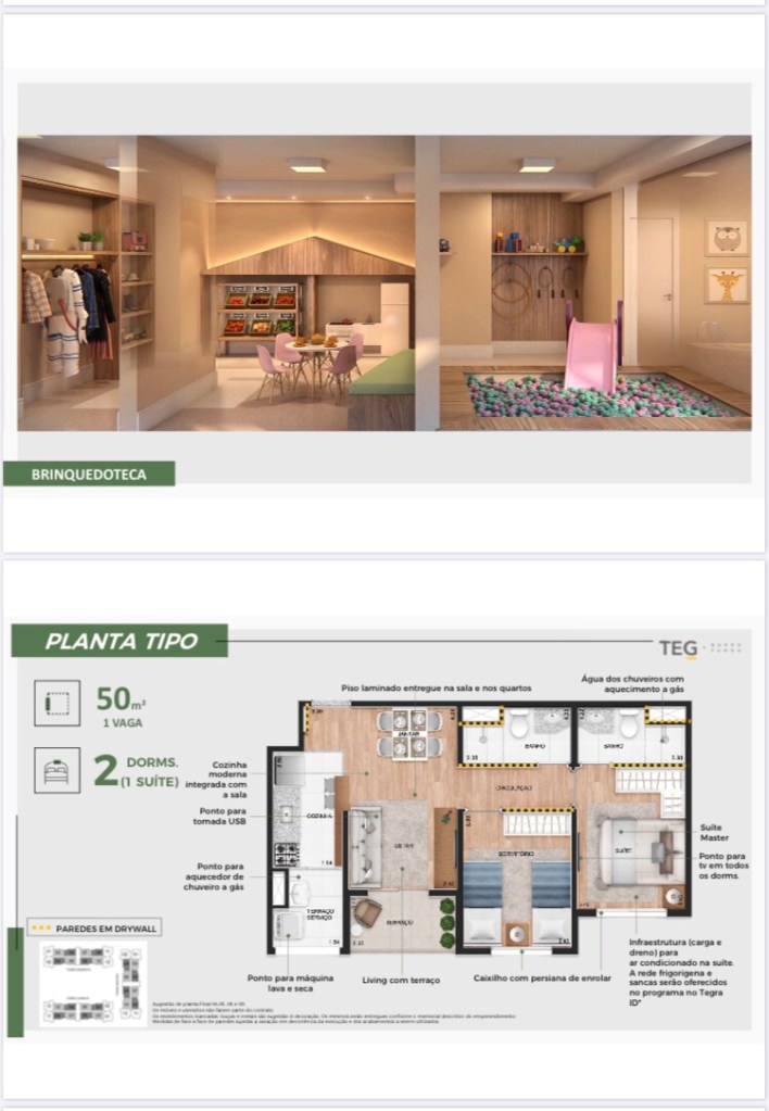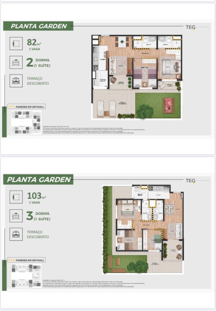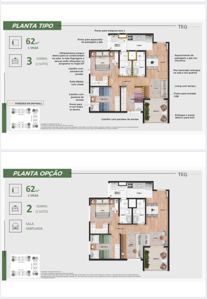 Serão Apartamentos de 50 Ms com 02 Dois Dormitórios e 01 Uma Suíte e 01 Vaga de Garagem e de 62 Ms com 02 Dois ou 03 Três Dormitórios e 01 Uma Suite e 01 Uma Vaga de Garagem