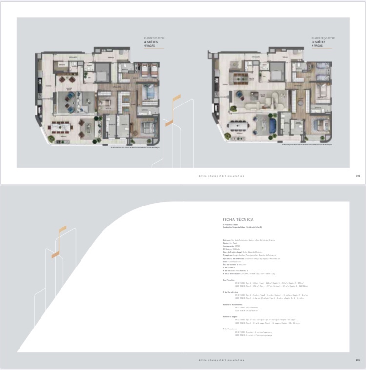 Torre 1 Contará com Apartamentos de 134 Ms de 02 Duas Suítes e de 162 Ms com 03 Três Suítes e com 02 Duas e 03 Três Vagas de Garagem e Duplex de 213 Ms de 03 Três Suítes e de 270 Ms de 04 Quatro Suítes e 03 Três e 04 Vagas de Garagem