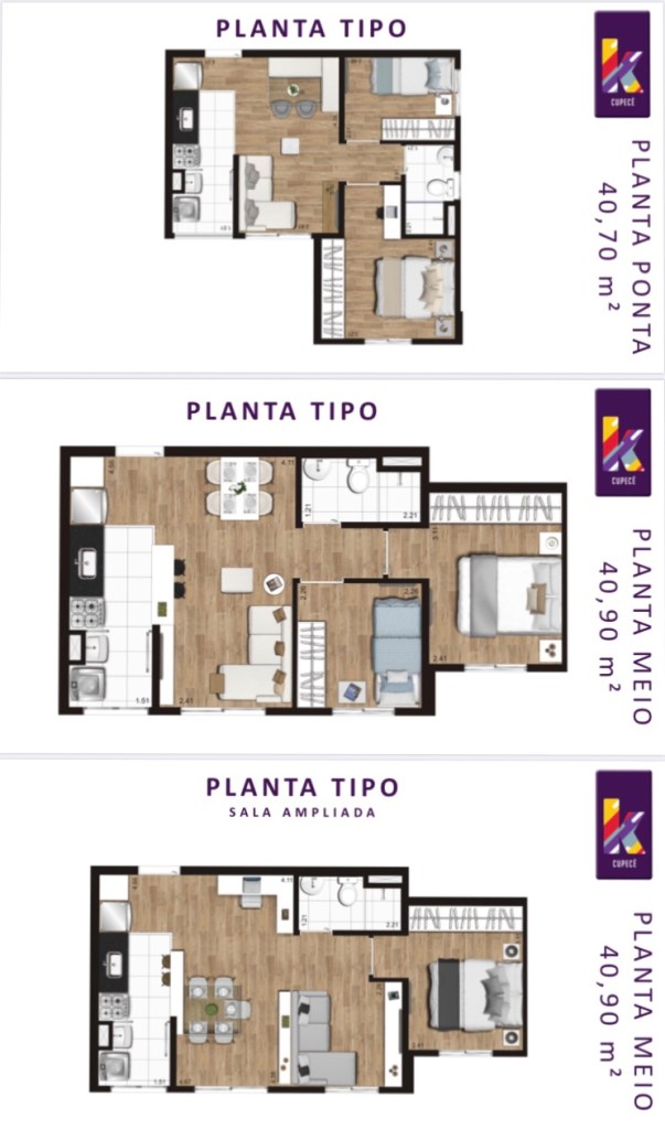 Serão Apartamentos de 40 Ms de 01 Um ou 02 Dois Dormitórios e com Vagas de Automóvel,Moto ou Bicicletas!!!!
