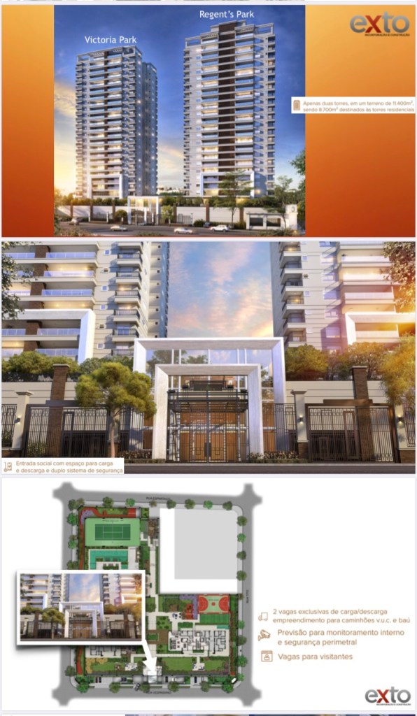 Em um Quarteirão de 11.400 metros ,o Clock são 02 Duas Torres a Victória Park e a Regent Park que Vão Ocupar um Terreno de 8.700 metros Reservados,a Torre Regent são 02 Apartamentos por Andar com 03 Elevadores e a Torre Victória são 04 Apartamentos por Andar com 05 Elevadores!!!