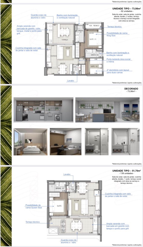 Serão Apartamentos de 52 Ms de 01 Uma Suíte e 01 Vaga de Garagem e de 74 Ms de 02 Duas Suítes e 01 Uma Vaga de Garagem!!!