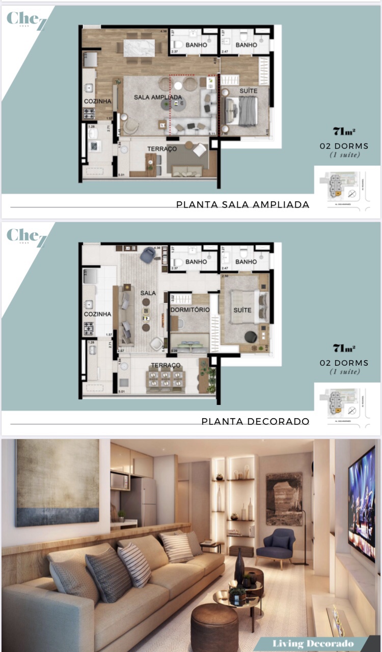 São Apartamentos de 71 Ms de 02 Dois Dormitórios e 01 Uma Suíte e 01 Uma Vaga de Garagem e são as Últimas Unidades!!!