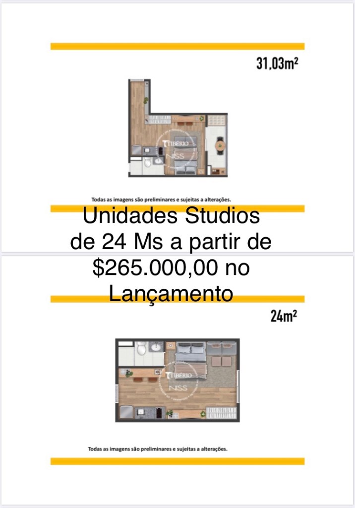 Serão 29 Studios Não Residenciais e 147 Studios Residenciais,Studios de 24 Ms,de 31,03 Ms e de 32,78 Ms e 02 Duas Lojas na Fachada Viva do Projeto!!!!