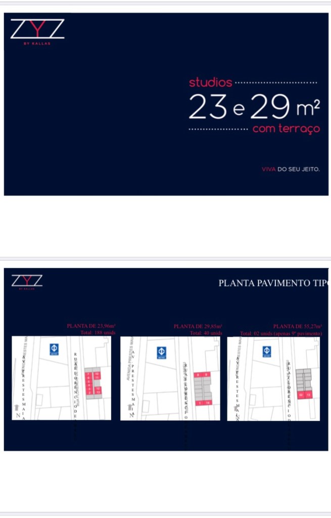 Serão Apartamentos Studios de 23,96 Ms e de 29,85 Ms,Com Varanda e com Vagas de Carro ou Moto e Vagas Extras,e esse Empreendimento será uma Oportunidade para os Investidores e Comerciantes da Região!!!