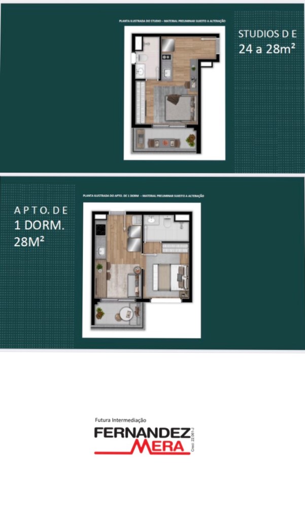 Serão Apartamentos de 01 Um Dormitório de 28 Ms e Studios de 24 Ms ou 28 Ms,agende já a sua Visita !!!!