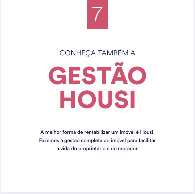 A Housi te Oferece além da Gestão do seu Imóvel ,também um Sistema de Atualização Constante trazendo uma integração com outros Condomínios da Marca,podendo usar a Academia,os Bares e Restaurantes dos Outros Produtos da Marca e também oferece Bicicletas e Automóveis Compartilhados e Horta Caseira,além de um Sistema WellNess de Moradia com Qualidade de Vida e Sustentabilidade e Compartilhamento em Bairros com Mobilidade e Acessibilidade!!!