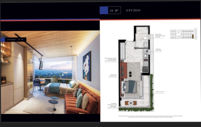 Serão Apartamentos Studios de 29 Ms,30 Ms e de 36 Ms,de 01 Um Dormitório de 42 Ms e 51 Ms e Duplex de 61 Ms e 73 Ms,Todas as Unidades sem Vaga de Garagem e a Gestão Condominial será da Gestora Charlie,voltado para Executivos e Investidores!!!!