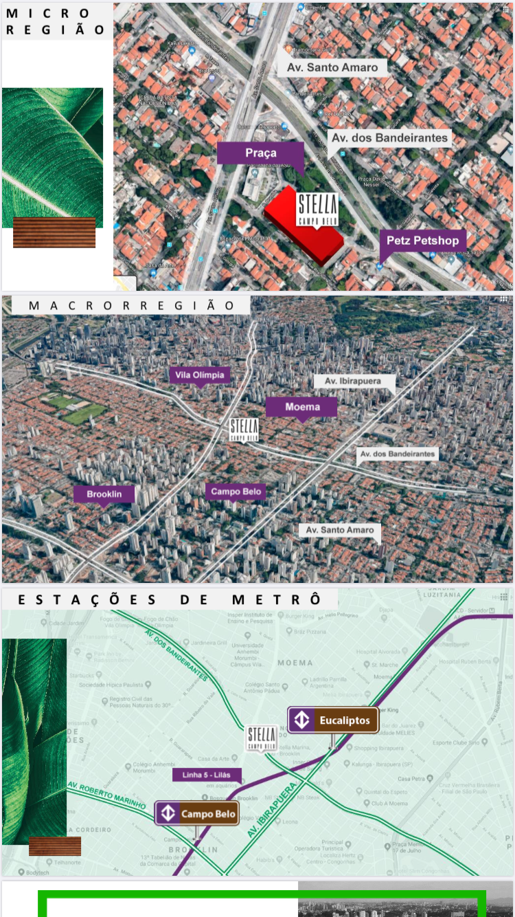 Entre a Vila Olímpia,o Brooklin,o Campo Belo e Moema o Stella está a poucos minutos das Estações de Metrô Ecaliptos e Campo Belo e com Fácil Acesso ao Aeroporto de Congonhas e a Av.Luis Carlos Berrini e todo o Centro Comercial da Zona Sul!!!!