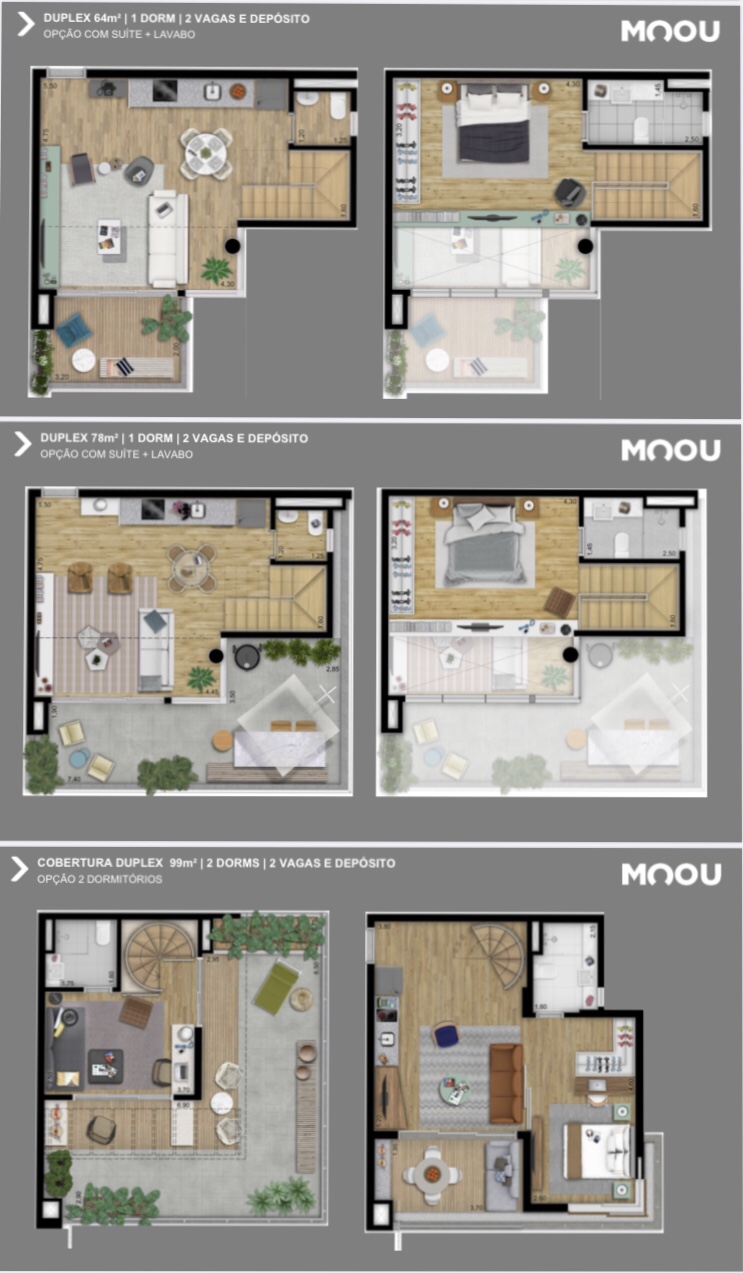 Em um Terreno de 1.229 Metros o MOOU vem com uma Proposta de Apartamentos Lofts e Duplex com a Arquitetura de FGMF,o Paisagismo de Raul Pereira e Camila Vacari e a Decoração de Interiores da Super Limão !!!