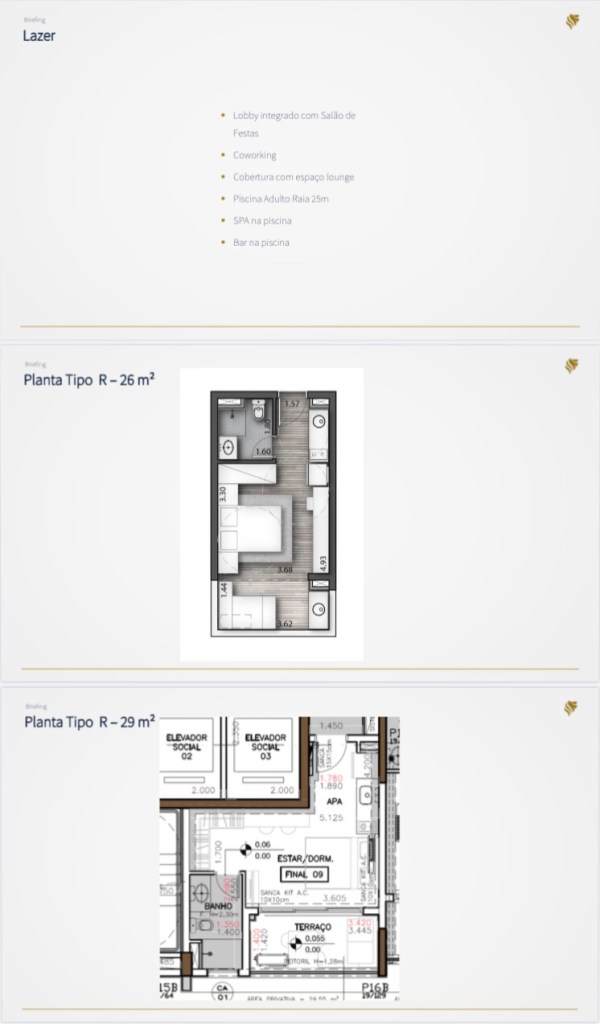 Na Torre Studios ,serão 122 Unidades Flats de 29 Ms e 116 Studios Residenciais de 26 Ms e 27 Ms!!!