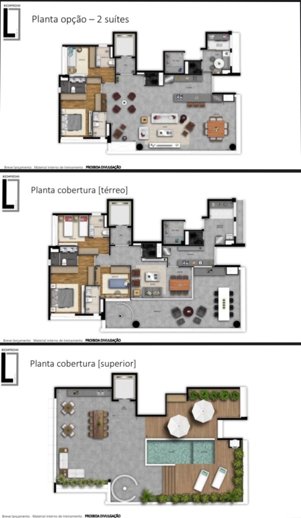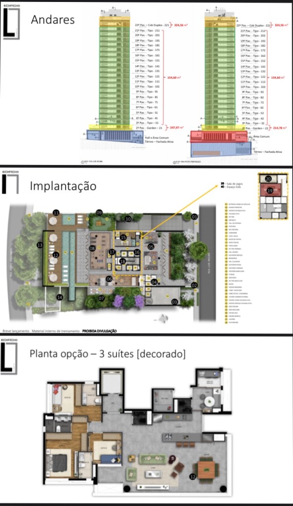 Na Torre Residencial serão Apartamentos de 122 Ms de 03 Três Suítes e 02 Duas Vagas de Garagem e Depósito Privativo e de 144 Ms de 04 Quatro Dormitórios e 03 Três Suítes ou de 03 Três Suítes e 02 Duas Vagas de Garagem e Depósito Privativo e 02 Duas Coberturas Duplex de 324 Ms de 3 Três Suítes e 03 Três Vagas de Garagem e Depósito Privativo,e Na Torre Studios serão Studios de 27 Ms a 29 Ms com uma Arquitetura Maravilhosa e na Medida para o seu Investimento ou para Moradia !!!!