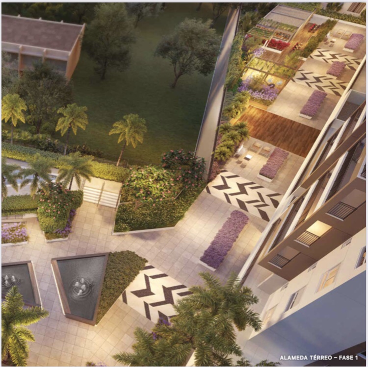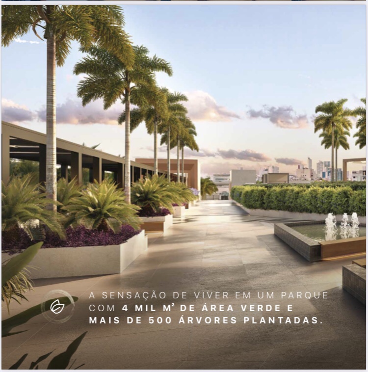 Teremos também 4.000 metros de Área Verde com mais de 500 Árvores Plantadas,700 Metros de Área Molhada com Piscina com Raia de 30 Ms e o Bar da Piscina e Espelhos D’Água nos Acessos ao Empreendimento.
