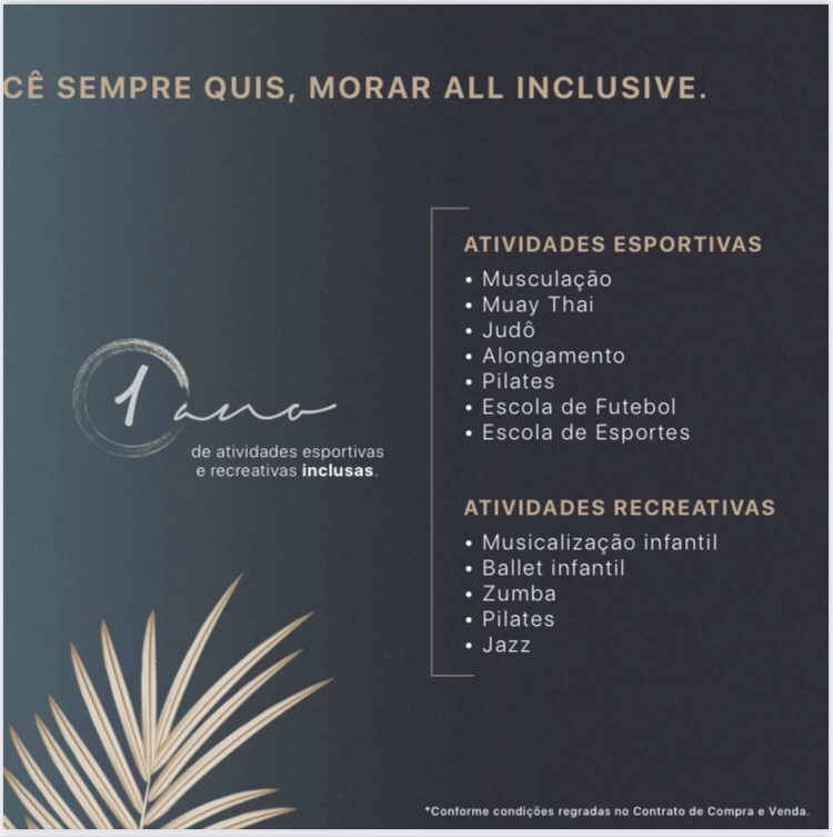 Em Um Terreno de 15.000 metros quadrados,teremos Um Lazer Elevado a 10 metros de Altura e uma Área de 4.650 metros de Lazer com mais de 20 Itens para sua Comodidade que serão Entregues Equipados e Decorados por Profissionais Renomados.