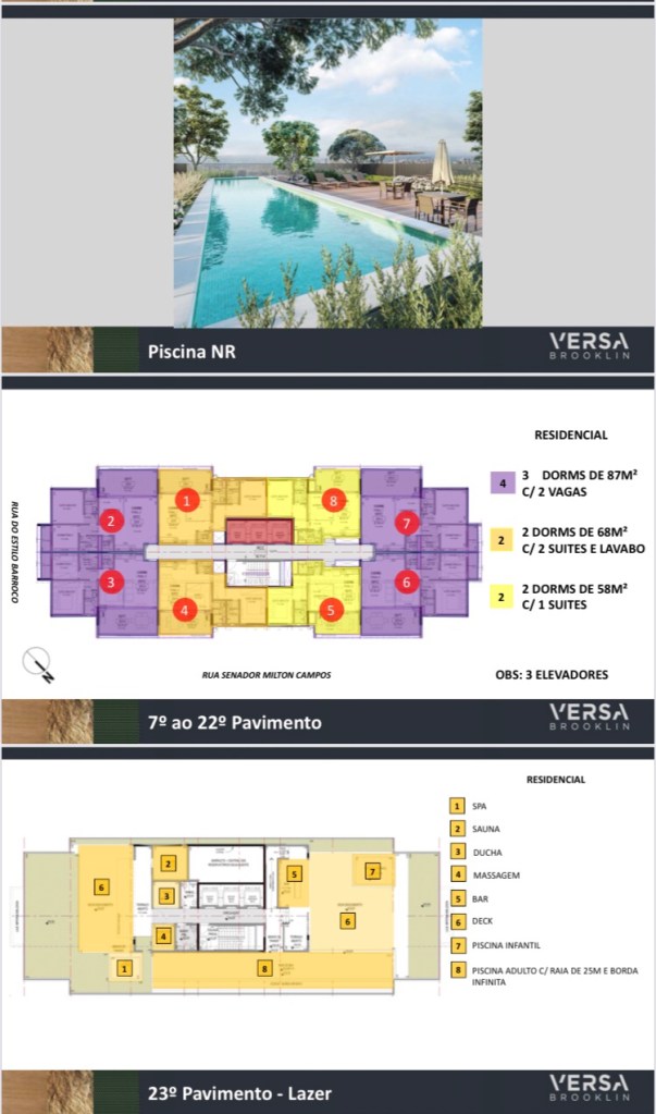 O Projeto estará Localizado na Rua Senador Milton Campos 175 Brooklin,e serão Apartamentos Residenciais Studios de 20 Ms até 27 Ms com Pé Direito de 3,60 Ms e Sem Vaga de Garagem,Apartamentos de 01 Um Dormitório de 31 Ms a 36 Ms com Pé Direito de 3,50 Ms e com 01 Uma Vaga de Garagem,Apartamentos de 58 Ms de 02 Dois Dormitórios e 01 Uma Suite e 01 Uma Vaga de Garagem,de 68 Ms de 02 Duas Suítes e 01 Uma Vaga de Garagem e de 87 Ms de 03 Três Dormitórios e 01 Uma Suíte ou de 02 Duas Suítes e 02 Duas Vagas de Garagem.