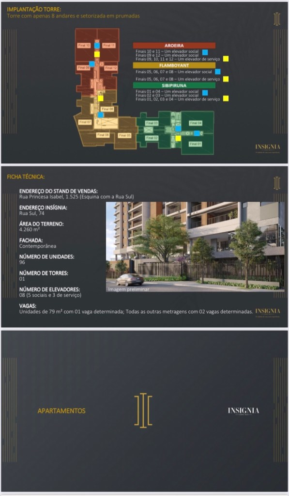 A Teixeira Duarte tem mais de 90 Anos em Portugal e mais de 19 no Brasil e vários Projetos de Sucesso entre eles os Quartiers Brooklin e Campo Belo,e o Insígnia estará Localizado na Rua Princesa Isabel 1.525 esquina com a Rua Sul 74 no Campo Belo.