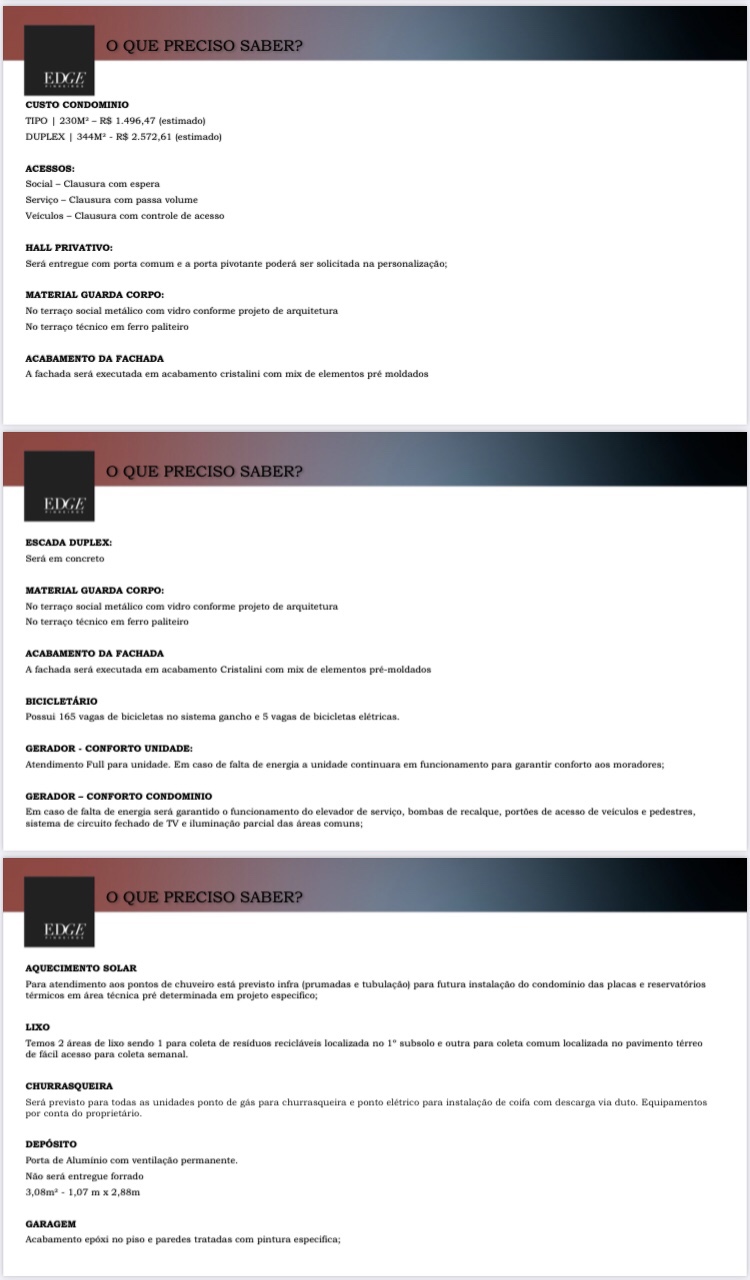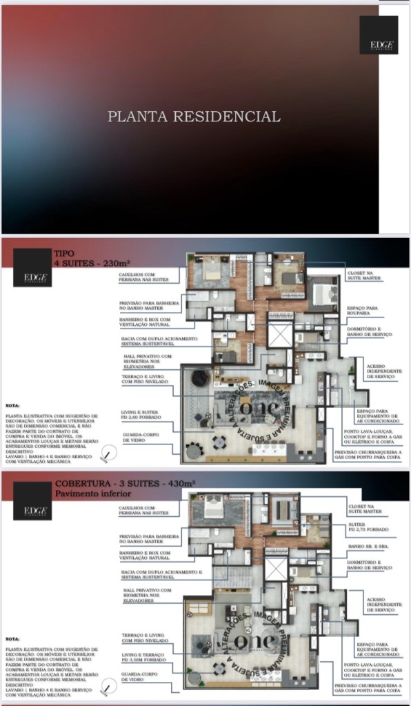 Serão 45 Apartamentos Tipo de 230 Ms de 04 Quatro Suítes e 03 Três Vagas de Garagem e Depósito Privativo,e 02 Duas Coberturas Duplex de 430 Ms de 03 Três Suítes e 04 Quatro Vagas de Garagem e Depósito Privativo,com um Lazer Fantástico em um Maravilhoso Projeto de Luxo e Bom Gosto da One Incorporadora!!!