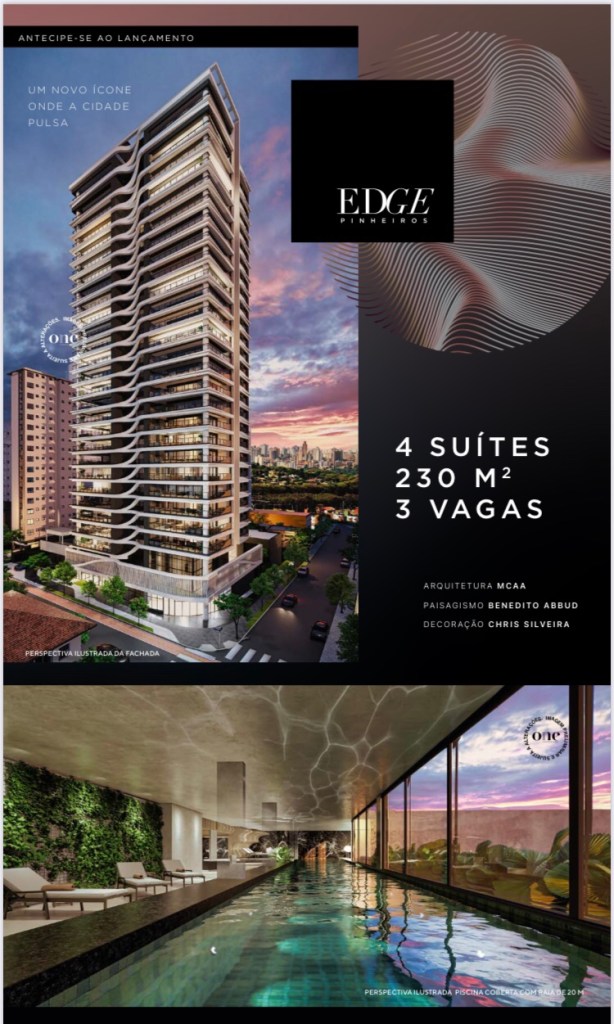 Depois do grande sucesso de Vendas do Edge Itaim,chega em Pinheiros o Edge Pinheiros,um Projeto de Altíssimo Padrão da One Incorporadora!!!
