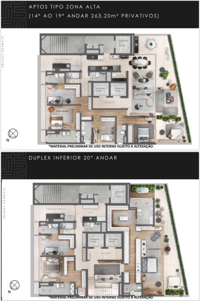 Apartamentos Tipo de 263 Ms com 04 Quatro Vagas de Garagem e Depósito Privativo de 05 Ms