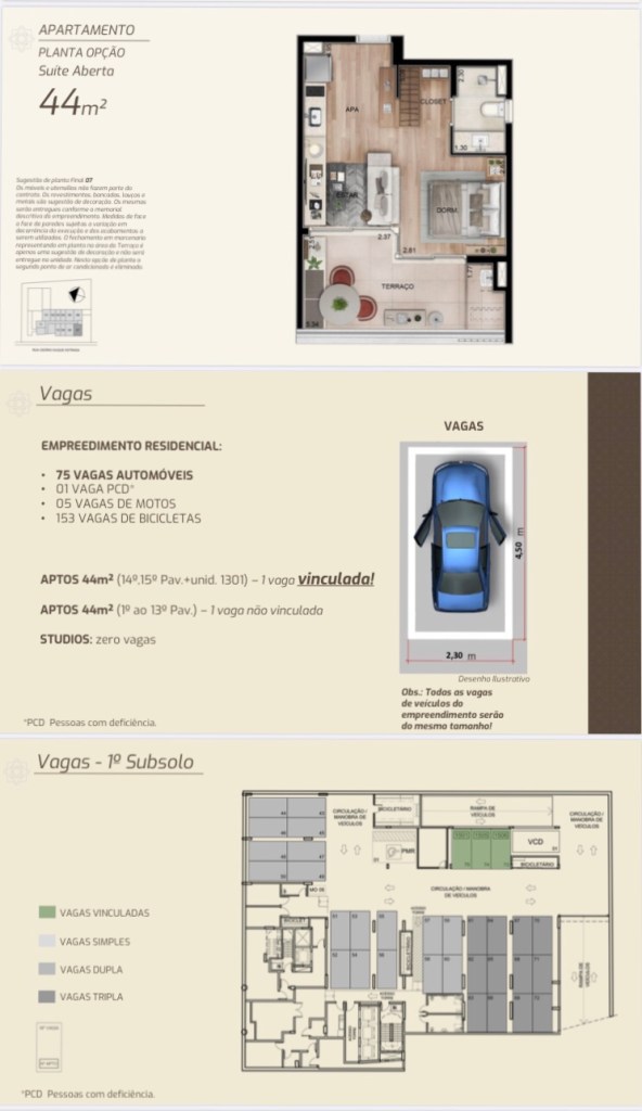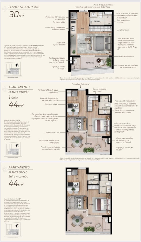 No Nosso Residencial serão Unidades Studios de 26 Ms até 33 Ms e de 01 Dormitório de 46 Ms e 52 Ms com 01 Uma Vaga de Garagem